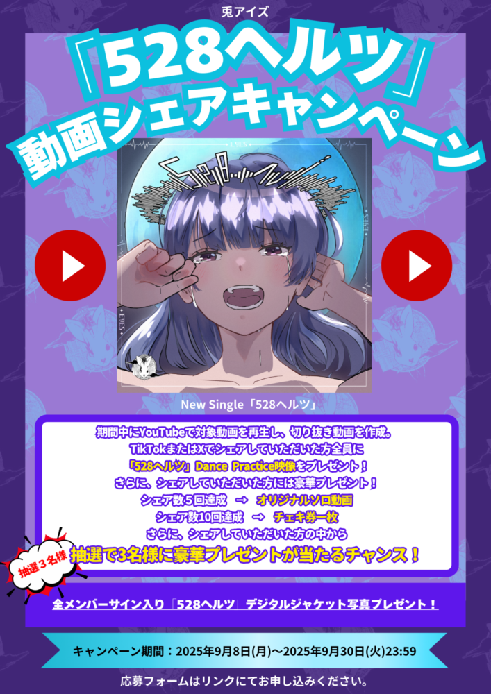 さらに、シェアしていただいた方の中から抽選で3名様に全メンバーサイン入り「528ヘルツ」デジタルジャケット写真が当たるチャンス!