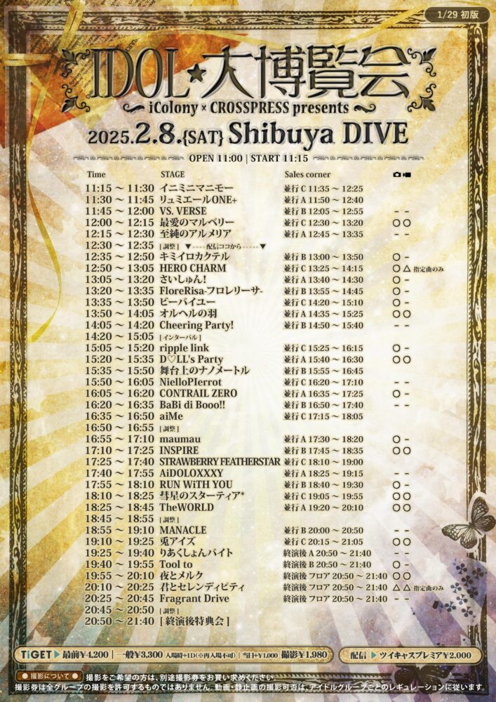 ?: 撮影可(掲載につきまして静止画のみ公式DMにて要確認)※別途撮影券